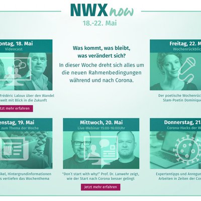 Die NWXnow ist wie die reguläre NWX ein Forum für die Diskussion zur Zukunft der Arbeit, das in diesen Zeiten der Ungewissheit Orientierung und Perspektiven geben soll. Die Teilnahme und alle Inhalte der NWXnow sind kostenfrei.