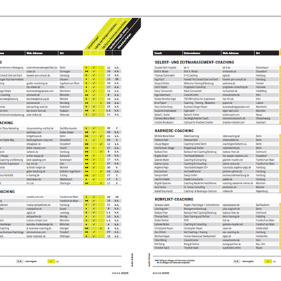In den Listen ist einsehbar, ob die Coaches überproportional häufig von Kollegen empfohlen worden sind, über wie viel Berufserfahrung sie verfügen, wie viele Mitarbeiter sie haben und wo sie ansässig sind. Die gelisteten Coaches sind berechtigt, das Focus-Siegel „Top Coach 2016“ zu führen. Die Studie zählte insgesamt 6.800 Teilnehmer – einerseits Coaches, andererseits Personaler aus Unternehmen.