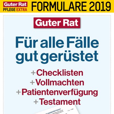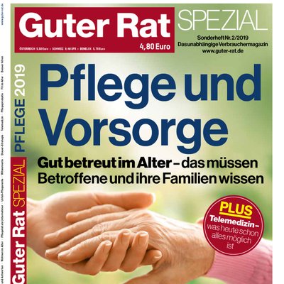 Für 4,80 Euro bietet das Guter Rat-Spezialheft „Pflege & Vorsorge 2019“ geballtes Basiswissen für Menschen, die für das eigene Alter planen und vorsorgen möchten, aber auch für Angehörige, die sich auf den Ernstfall vorbereiten möchten.