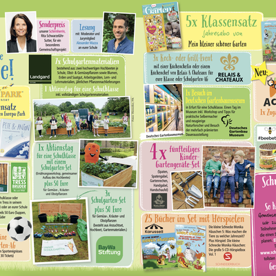 Bewerben können sich Schulen in ganz Deutschland ab sofort bis zum 14. Oktober .2024. Das Teilnahmeformular und mehr Informationen ist unter www.schulgartenaktion.de zu finden. Partner und Unterstützer der Aktion 2024 sind wieder LaVita, die BayWa-Stiftung und die Landgard Stiftung. Viele tolle Preise gibt es zu gewinnen: u.a. ein Koch-Event für die ganze Klasse oder Schulgarten-AG mit Bio-Sternekoch Simon Tress sowie weitere Koch- oder Grill-Events mit Küchenchefs von Relais & Châteaux, einen Schulklassen-Besuch im Deutschen Gartenbaumuseum, einen Schulbesuch samt Lesung von Jury-Mitglied Alexander Mazza, einen Aktionstag der BayWa-Stiftung mit Ernährungsworkshop und gemeinsamem Aufbau und Bepflanzen eines Hochbeets, einen Klassensatz Europa Park-Tickets, Klassen-Tickets von LaVita für tolle Sportereignisse, Jahresabo-Klassensätze von Mein kleiner schöner Garten, tolle Pflanzen- und Gartengeräte-Sets von Landgard und vieles mehr.