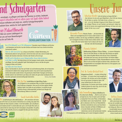 „Unserem Unternehmen ist es wichtig, dass jedes Kind schon früh die Möglichkeit hat, die Kreisläufe der Natur hautnah zu erleben. Ein Garten erfordert viel Geduld und Zeit, er schenkt dafür aber auch so viel Freude! Wer weiß, wo Obst und Gemüse herkommen, wird gute Lebensmittel ein Leben lang viel mehr wertschätzen und genießen.“, sagen Sarah Truntschka-Tüfekci und Ertan Tüfekci, Geschäftsführer von LaVita, einem der Partner der Schulgartenaktion. Prominente Unterstützung erhält die insgesamt 11-köpfige Jury auch von TV-Moderator Alexander Mazza und Schauspielerin Bettina Zimmermann. Alexander Mazza besucht als Botschafter der Aktion immer wieder in ganz Deutschland Schulen und ihre Gärten. „Es ist wunderbar zu erleben, wie die Jungs und Mädchen aufblühen, wenn sie im Schulgarten die Natur mit allen Sinnen erfahren dürfen. Jede Schule sollte einen Garten haben. Auch in diesem Jahr freue ich mich über viele tolle Einsendungen.“ Bettina Zimmermann ist ein echter Fan der Schulgartenaktion von Mein kleiner schöner Garten. „Das Gärtnern in die Schulen zu bringen, zählt zu den besten Nachhaltigkeitsoffensiven, die man sich vorstellen kann. Wenn wir den Kleinen schon im Grundschulalter bewusst machen können, wie wichtig Artenvielfalt und der behutsame Umgang mit der Umwelt sind, lernen sie fürs Leben.“