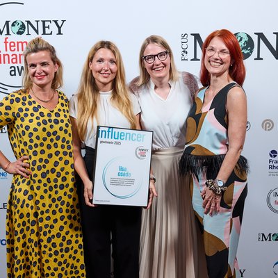 Über die Kategorie „Influencer“ konnten erstmals auch Finanzbegeisterte außerhalb der Jury via Community Voting auf der Award-eigenen Landingpage abstimmen. Mit Votes im insgesamt vierstelligen Bereich fiel die Entscheidung auf Lisa Osada, die mit der von ihr gegründeten Plattform „Aktiengram“ in Social Media ihre Erfahrungen und Erkenntnisse zu Aktien und Finanzen teilt. Als prominente deutsche Finanzbloggerin freute sie sich sehr über die Überreichung des Female Finance Award durch Danone-Finanzdirektorin Stephanie Enzinger.