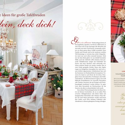 Besonders an Weihnachten liebe ich, dass man einmal die Möglichkeit hat, sich lieben Menschen und dem eigenen schönen Zuhause ohne Zeitdruck zu widmen. Gerne entschwinde ich auch in ein gemütliches Chalet in die Berge, um Abstand zu gewinnen, und wenn wir dann für ein paar Tage einschneien, ist das Winterglück perfekt. Meine Lieblingsgeschichte im Buch ist „Alles sieht so festlich aus“ (ab S. 52) und der Tisch, an den ich mich am liebsten setzen würde befindet sich auf Seite 121."