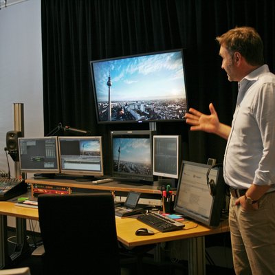 Doch eine TV-Produktion ist auch für mich Neuland. Umgeben von Wänden voller blinkender Bildschirme sitzen Techniker hier direkt neben kreativen Köpfen. Zusammen lassen sie entstehen, was Zuschauer als Endprodukt im Fernsehen sehen. Von der Konzeption bis zur Abnahme verfolgen wir am Beispiel des K1 Magazins die Geburt einer Folge. Wir machen einen Abstecher in den riesigen, brummenden Serverraum, bevor es in der kleinen, schalldichten Tonkabine ernst wird: Hier treffen wir die „Stimme aus dem Off“. Mühelos wechselt der Sprecher von seiner normalen Stimme zu melodischen TV-Kommentaren.