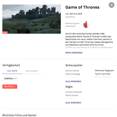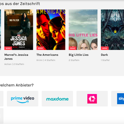 Die Inhalte von Streaming-Anbietern befinden sich in stetigem Wandel: Neue Titel kommen täglich hinzu, alte verschwinden plötzlich, tauchen aber Monate später wieder auf. Diese Informationslücke schließt TV Spielfilm mit seinem Angebot und wird damit auch dem Trend zu immer mehr nicht-linearen Plattformen gerecht. Nutzer können sich durch den Streaming-Guide einen Überblick verschaffen, welche Filme und Serien bei welchem Anbieter laufen und was man auf keinen Fall verpassen sollte. Die Suche nach konkreten Film- oder Seriengenres sowie nach spezifischen Kategorien wie „Die neusten Kinderfilme“ oder „Streaming-Tipps aus der Zeitschrift“ sind möglich. Zu jedem Titel werden Cast-Informationen, Trailer und die Verfügbarkeit bei den Streaming-Anbietern geliefert. Darüber hinaus können sich die Nutzer automatisch auf die entsprechende Streaming-Seite weiterleiten lassen und direkt ins Serien-Vergnügen einsteigen. Zum Start sind Informationen zu Abo-Anbietern wie Netflix, Amazon Prime, Sky Ticket, Maxdome und Entertain TV verfügbar. Die Ergänzung von weiteren Anbietern sowie der kontinuierliche Ausbau diverser Features sind geplant.