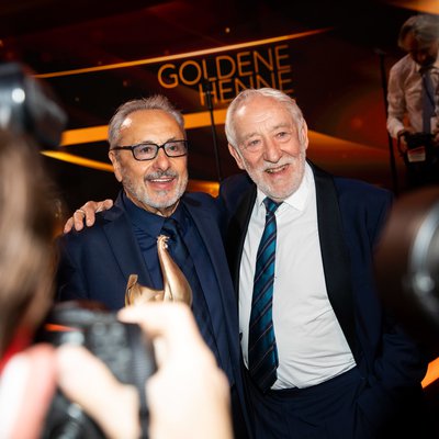 Da ist was los im Hühnerstall: Mit jetzt sechs Trophäen hat Wolfgang Stumph bereits seine eigene kleine Henne-Herde. Fünfmal hat der beliebte Schauspieler vom Publikum bereits die höchste Auszeichnung für seine Leistungen erhalten. Jetzt krönte die Goldene Henne-Jury sein Schaffen mit dem Ehrenpreis für sein Lebenswerk. Die Laudatio hielt Schauspiel-Kollege Dieter Hallervorden. Die Goldene Henne übergab Super Illu-Chefredakteur Stefan Kobus an Wolfgang Stumph.