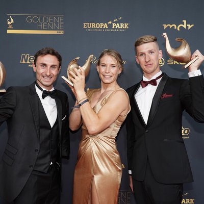 Jetzt glitzern sie um die Wette, die Goldenen Henne-Trophäen und die Goldmedaillen der frischgebackenen Olympiasieger:innen Aline Rotter-Focken, Florian Wellbrock und Martin Schulz. Die Ringerin, der Schwimmer und der Paralympics-Triathlet begeisterten wie viele andere deutschen Sportler:innen das Publikum an den Fernsehschirmen mit ihren herausragenden Leistungen in Tokio. Dafür erhielten sie von der Jury jeweils die Goldene Henne als Olympia-Ehrenpreis. Die Laudatio hielt Ex-Profiboxer Henry Maske.