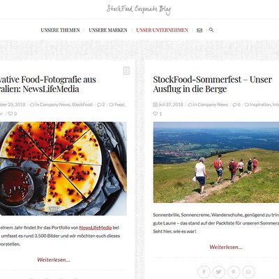 Der Blog hat ein journalistisches Format und ist mit mindestens drei neuen redaktionellen Beiträgen pro Woche immer aktuell. Unter jedem Blogbeitrag gibt es sowohl die Möglichkeit, diesen in den gewünschten Social Media-Kanälen zu teilen als auch die gewohnte Kommentarfunktion. Um über den konstanten Fluss an Inspiration und Information auf dem Stockfood-Blog stets auf dem Laufenden zu bleiben, können sich die User ganz praktisch und unkompliziert für den Blog-Newsletter anmelden und erhalten dann einmal pro Woche per Mail einen Hinweis auf die neu veröffentlichten Blogbeiträge. Bei Interesse gelangt man von dort mit nur einem Klick zum jeweiligen Post – z.B. über neue Fotografen und Blogger, deren Bilder in den Spezialagenturen angeboten werden, über die neuesten Food-, Deko- und Garten-Trends, über sensationelle Fotografien aus der Medizin, aufgenommen mit einem Rastelektronenmikroskop, oder auch über den jüngsten Stockfood-Teamausflug ins oberbayerische Bergland inklusive zünftigem Biergartenausklang.
