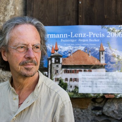Peter Handke, jury member for the Hermann Lenz Prize, which was awarded from 1999 to 2009 in memory of the writer Hermann Lenz in the locales of his works. It succeeded the Petrarca Prize, endowed by Hubert Burda from 1975–1995.