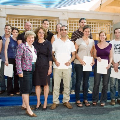 Steffi Czerny with the winners of the Hubert Burda Prize for innovation projects at Ben-Gurion University in Israel in 2008