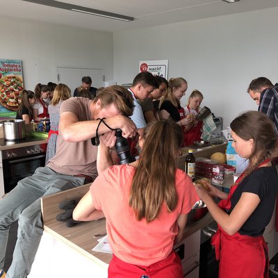 Above 1000 meters in the mountains and in the kitchen you generally use the informal German “Du”, as Jörg Götte says. With him, teaching and learning works on an equal footing. A sense of humor is the main ingredient in the recipe, giving it the extra something: “In order to get children and young people excited about cooking, you simply need to have fun yourself and not take yourself too seriously. This is not a heart surgery, after all”, says Jörg Götte. Chief editor Gaby Höger had fun as well, insisting on looking over the shoulder of the 12 to 18-year-old junior chefs to see what was in their pots.