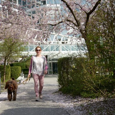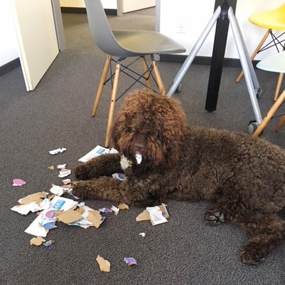 Two to three times a week I am at a doggie day care centre. That's great, because there are all my buddies and also cute girls. My owner says that is important for my socialisation. On the other days - depending on scheduling - I join her at the office. When she does her tasks, I sleep. When she goes to appointments, I like to come along. Sometimes people talk out of small boxes. Mom says these are video conferences so the other bipeds don't have to travel. I understand, that is also better for their dogs. At some point I get bored, then luckily it's lunchtime and we go to the park. Usually we meet other four-legged friends from other departments, for example Ivy from BCN. My owner says that through me she gets to meet colleagues she wouldn't otherwise have met. As communicative beings, dogs are born networkers!