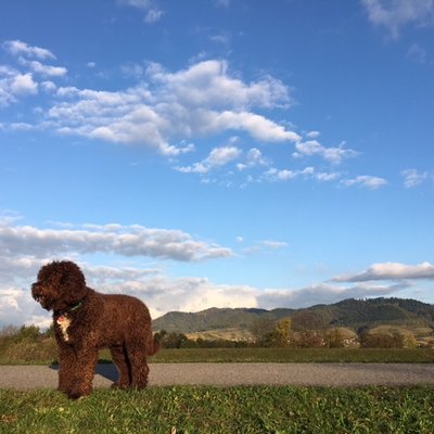 My name is Balou and I'm two years old. I am a French water dog and my breed is called Barbet. I was born in Emsland and there are very few of my kind: not even 100 or so in all of Germany. That's why my owners drove so far to bring me into their family. I am also a hypoallergenic dog, which means that I don't shed and also don't smell a lot.