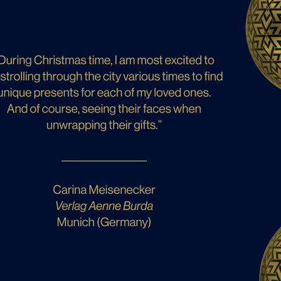 2,400 employees, 17 countries, 250 media brands: That's BurdaInternational in figures. But who exactly are the colleagues and what is it that keeps them busy? Whether it’s Asia, Africa or Europe – we regularly provide an insight into the different areas and topics of Burda's international colleagues. This time we asked our colleagues around the globe what they are looking forward to most during the Christmas season.